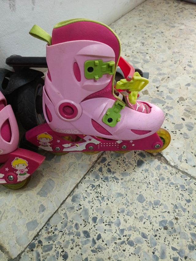 Detalles del productoPatines en línea para niña, marca Oxelo, color rosa. Están en buen estado y son ideales para principiantes.