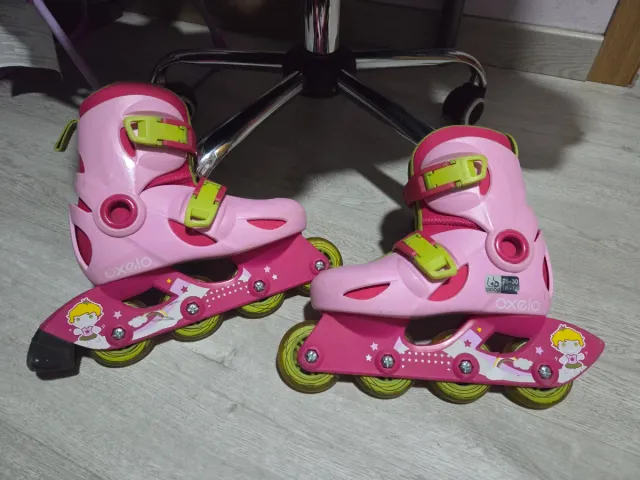 Detalles del productoPatines en línea de color rosa para niña, marca Oxelo. Perfectos para iniciarse en el patinaje.