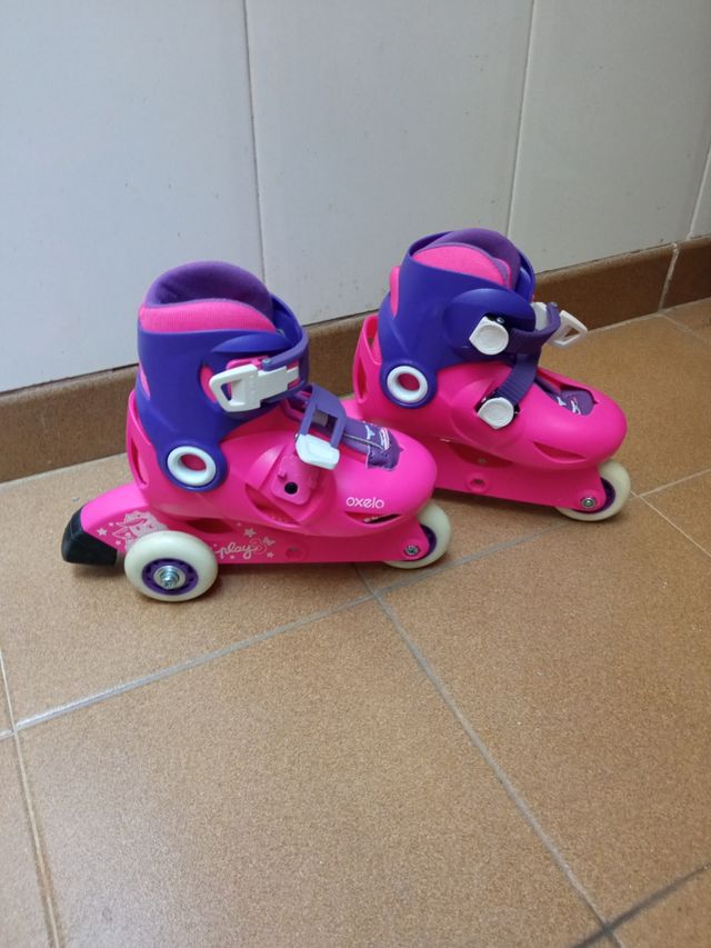 Detalles del productoPatines infantiles de la marca Oxelo en color rosa y morado.