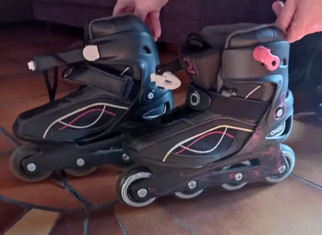 Detalles del productoPatines en línea Oxelo para niña, talla ajustable de 30 a 33. Diseñados para iniciarse en el patinaje.