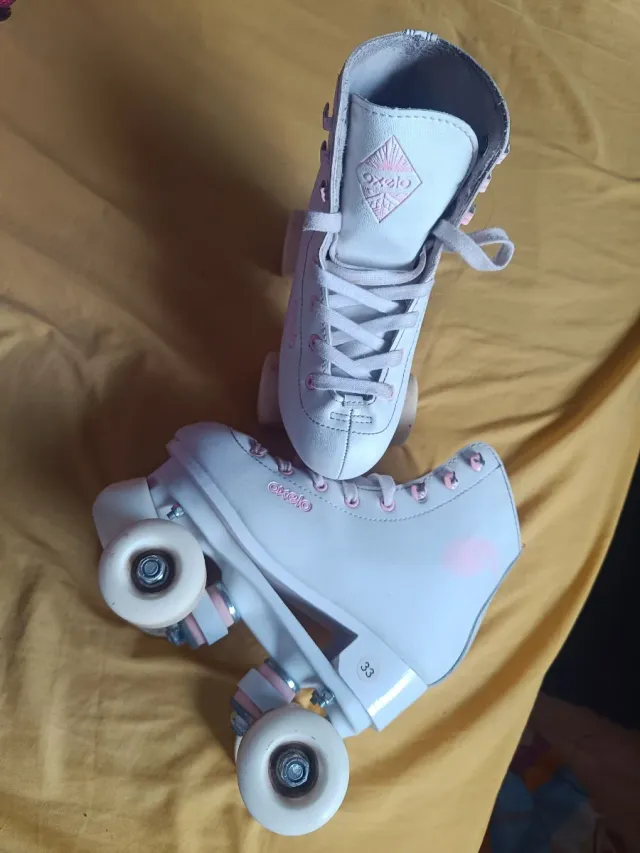 Detalles del productoPatines de niña marca Oxelo en color blanco con detalles en rosa. Talla 33.