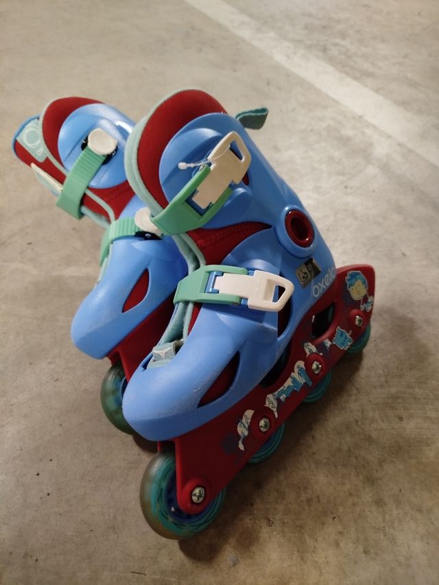 Detalles del productoPatines Oxelo para niño, talla 28-30 y protecciones.Están en buen estado, con algunos signos de uso.