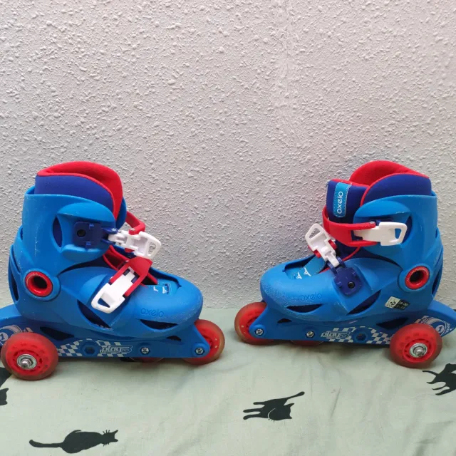 Detalles del productoPatines en línea para niños de la marca Oxelo, ideales para iniciarse en el patinaje.