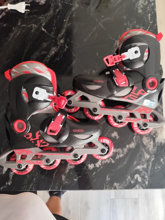 Detalles del productoPatines en línea Oxelo para niño o niña, ajustables en talla de la 32 a la 34. Diseñados para iniciarse en el patinaje.
