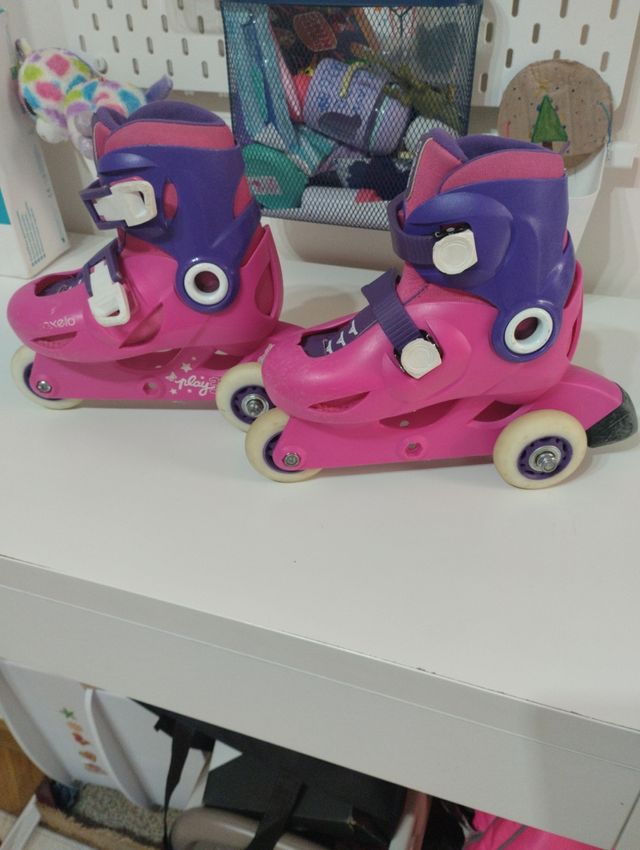 Detalles del productoPatines Oxelo Play infantiles, de color rosa y morado. Ideales para que las niñas empiecen a patinar. De 3 a 6 años.