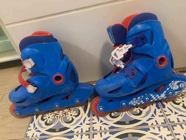 Detalles del productoPatines en línea Oxelo Play3 para niños, en color azul y rojo. Están en buen estado y listos para usar.