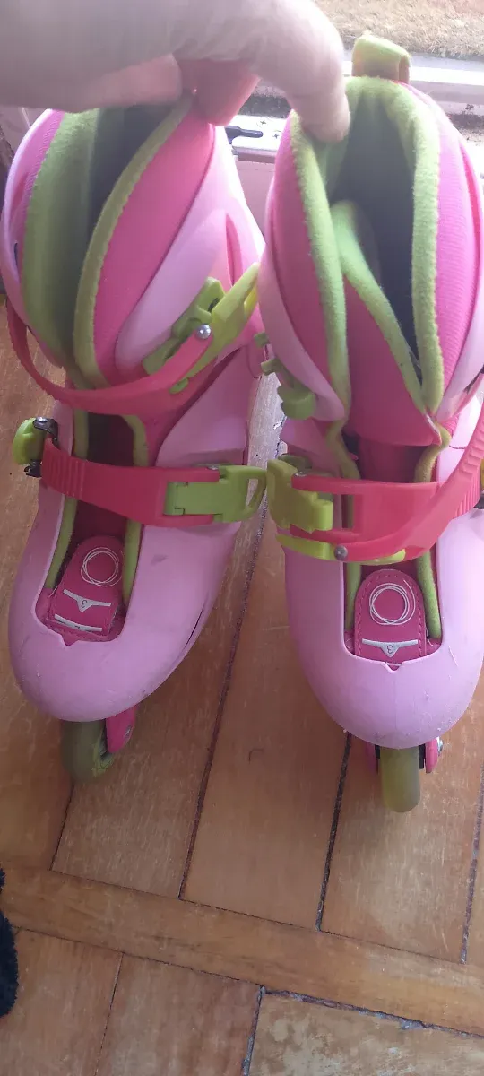 Detalles del productoPatines en línea Oxelo de color rosa, extensibles para adaptarse a tallas de 32 a 34.