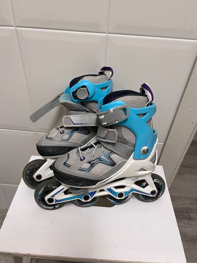 Detalles del productoPatines en línea Oxelo para niños, talla ajustable de 29 a 32. Perfectos para iniciarse en el patinaje.