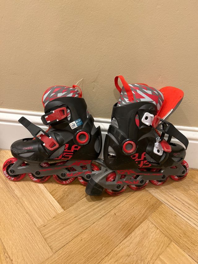 Detalles del productoSe venden patines en línea Oxelo en talla 30-32, ideales para iniciarse en el patinaje. Incluyen protecciones para mayor seguridad.