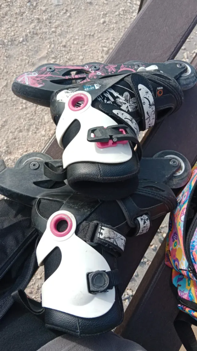 Detalles del productoPatines en línea Oxelo para niños y niñas, talla 30/32. Diseñados para iniciarse en el patinaje. Están rozados porque eran para iniciación. La bota está perfecta incluso por dentro.
