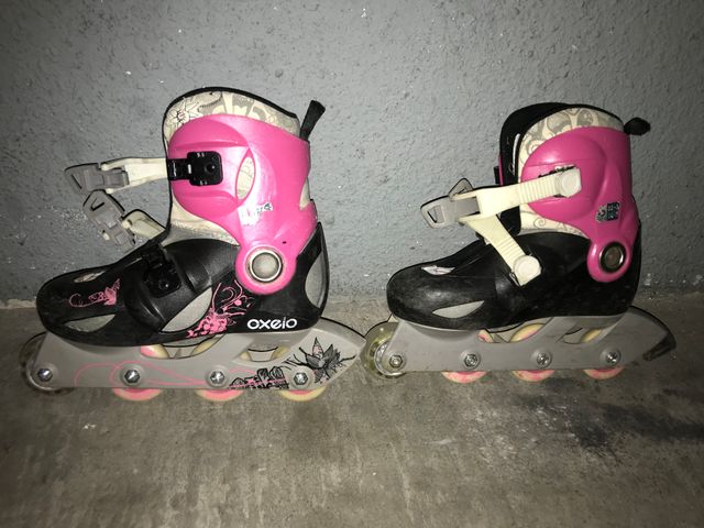 Se venden patines en línea de la marca Oxelo. - Talla 32-34. - Talla 34-36. - Diseño en color negro y rosa.