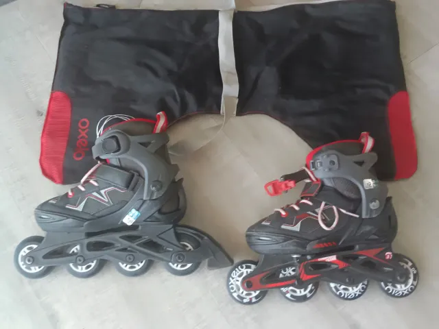 Se venden patines Oxelo en buen estado, ideales para iniciarse. Son ajustables. - Talla: 32-35 - Marca: Oxelo - Incluye bolsa de transporte.