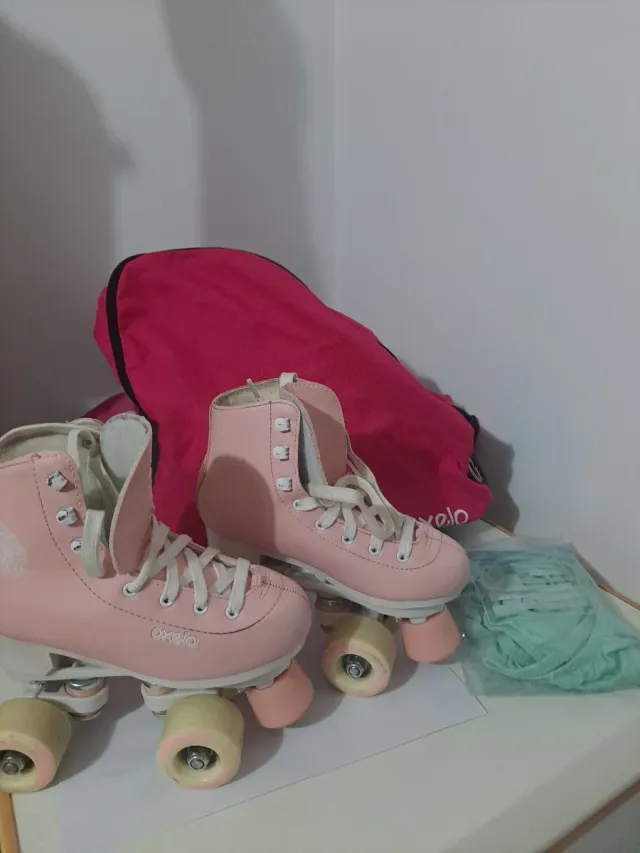 Detalles del productoSe venden patines Oxelo en color rosa, talla 33. Incluyen bolso de transporte y cubrepatines.tod0 12,50 €