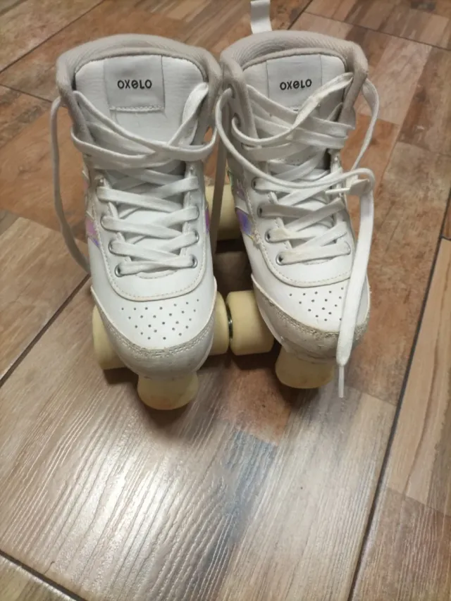 Detalles del productoPatines blancos de la marca Oxelo, talla 35. Perfectos para iniciarse en el patinaje.