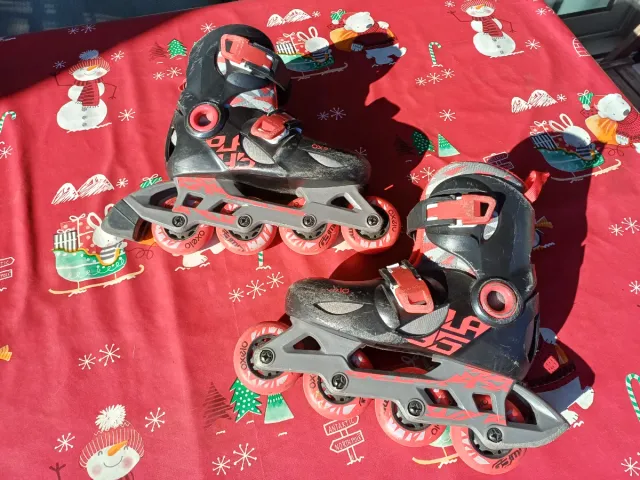 Patines en línea Oxelo con diseño moderno y ajuste de talla S, 29 a 32. - Ruedas de color rosa. - Cierre de velcro y hebilla. - Marco resistente.