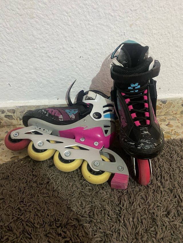 Detalles del productoPatines corte inglés con un diseño llamativo y colorido,ajustables,funcionan muy bien tiene algunos signos de desgaste porque son bastante viejos,¡perfectos para las pequeñas!