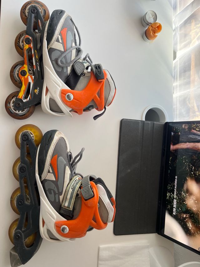 Se venden patines en línea para niños (talla 30-35) , ideales para disfrutar del patinaje. - Diseño deportivo en gris, naranja y blanco. - Funda incluida