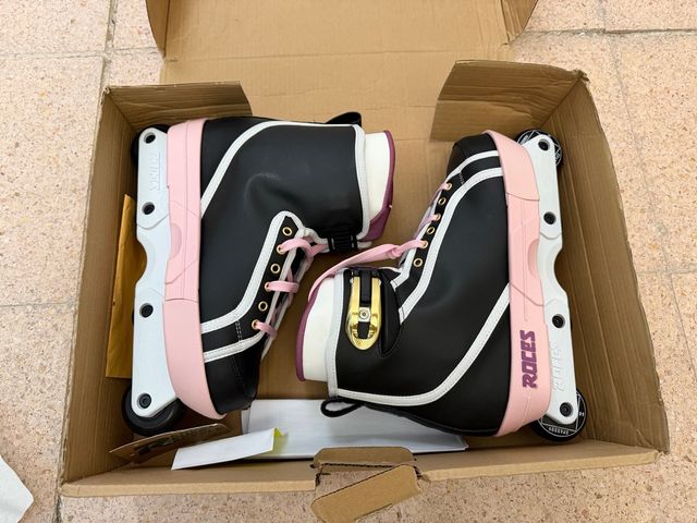 Detalles del productoPatines agresivo Roces Dogma Candy, talla 43. A estrenar. Los vendo porque dejo el agresivo. Son de lo más loco que hay en el mercado. Con botín exterior, como los Valo, y unos colores poco convencionales. El shell es el de los M12, así que es un patín más bien estrecho, aunque mi feeling personal es que los dogma aprietan un poco menos que los M12 al llevar los cordones en el forro y no en el shell. Al ser shell M12 son muy reactivos y al tener las plates de los Quinto son fáciles de usar, además con el cover externo amortigua mucho el ruido y no suenan prácticamente nada. Para mí lo mejor de Roces. Se pueden ver en Burgos.