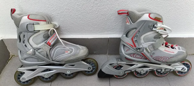 Detalles del productoPatines en línea Rollerblade de color gris, talla 38. Diseñados para ofrecer comodidad y rendimiento.