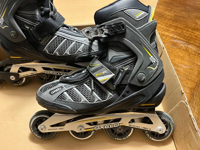 Detalles del productoPatines en línea Oxelo Fit 5 en color negro y gris. Diseñados para un ajuste cómodo y seguro.