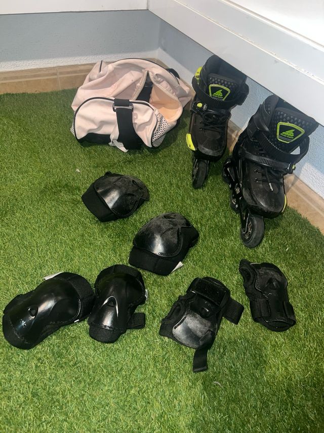 Detalles del productoSet de patines en línea Rollerblade ajustables y protecciones.