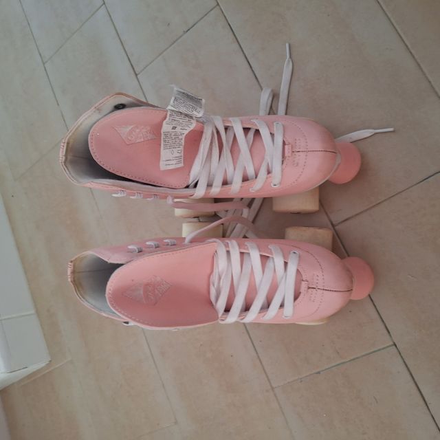 Patines 4 ruedas Decathlon de color rosa, talla 36. Están totalmente nuevos. - Modelo de 4 ruedas. - Color rosa pastel. - Talla 36.
