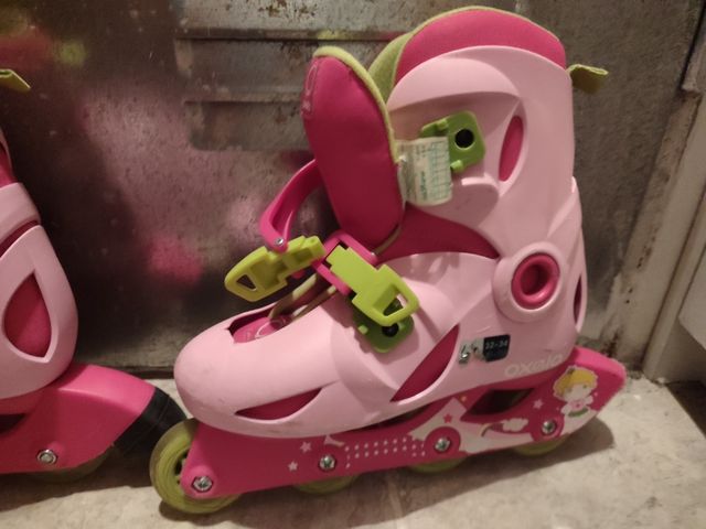 Patines rosas 32-34 Oxelo, casco y protecciónes