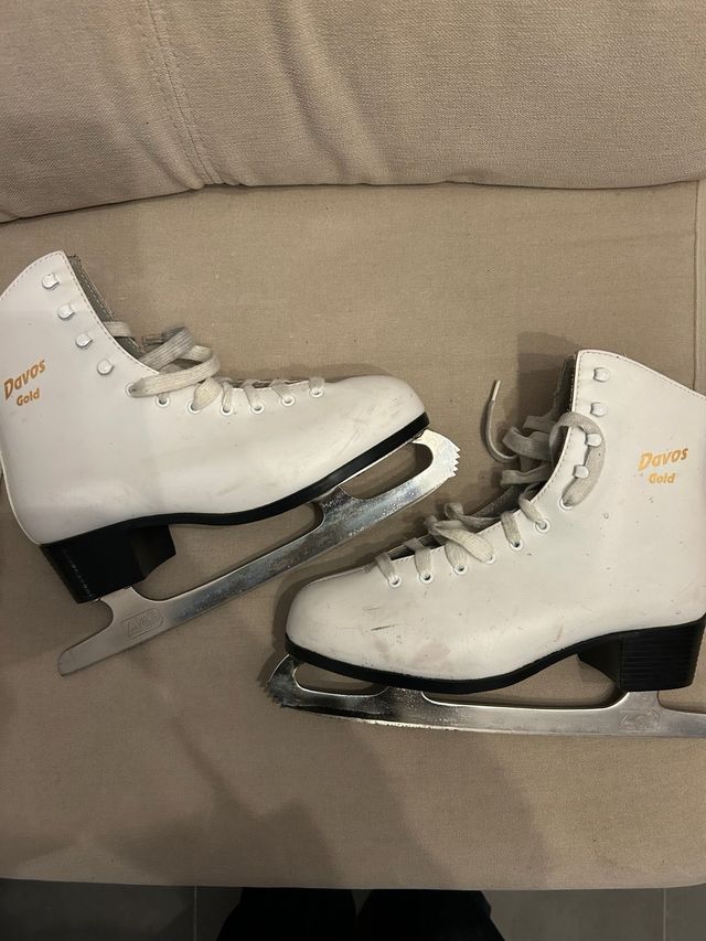 Patines de patinaje artístico Davos Gold. Talla 42 - Color blanco. - Cierre con cordones. - Hoja de acero inoxidable.