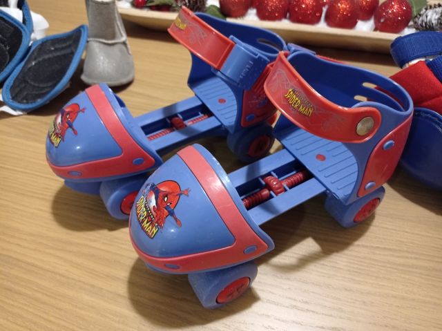 Los patines están usados, pero las protecciones están como nuevas. Incluye rodilleras, coderas y muñequeras. Los patines dan hasta la talla 30