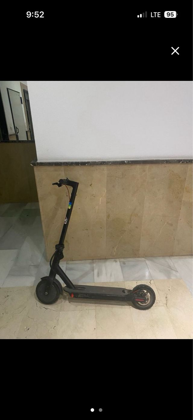 Patineta eléctrica de color negro. Ideal para desplazamientos urbanos. - Diseño plegable. - Ruedas delanteras y traseras.