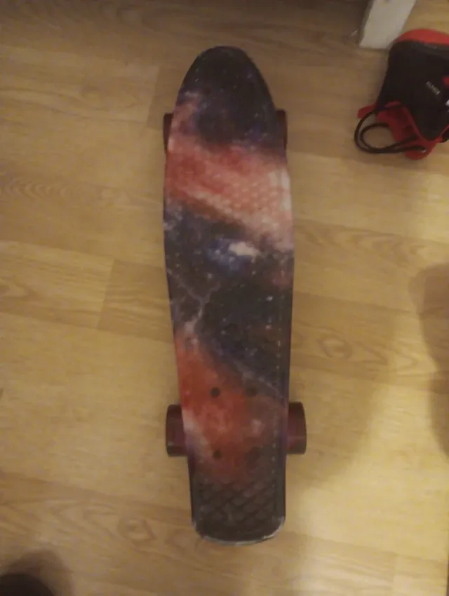 Detalles del productoPatineta estilo Penny Board con un diseño de galaxia vibrante. Ideal para desplazamientos cortos y trucos básicos.
