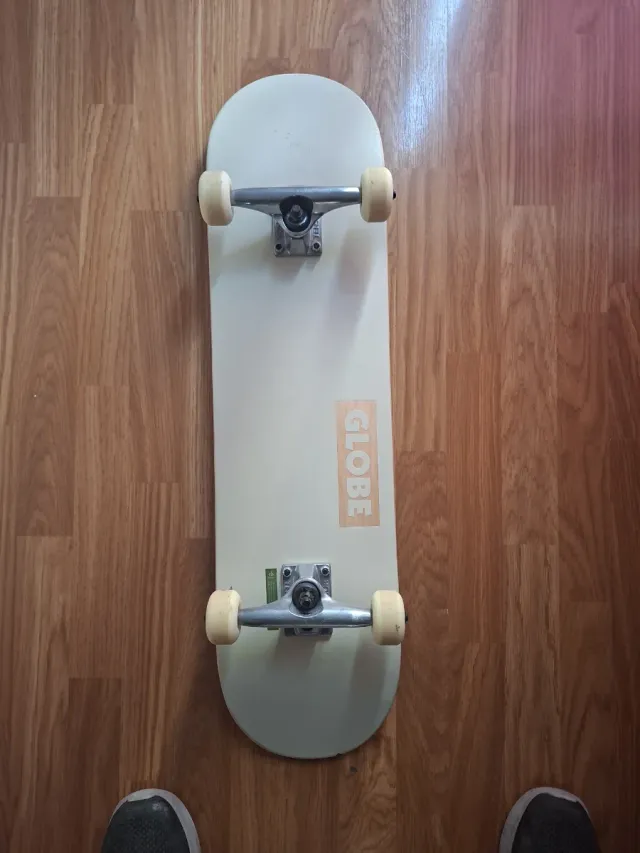 Patineta de skater marca Globe. Ideal para pasear o practicar trucos. - Tabla de color crema. - Ruedas color crema. - Ejes metálicos.