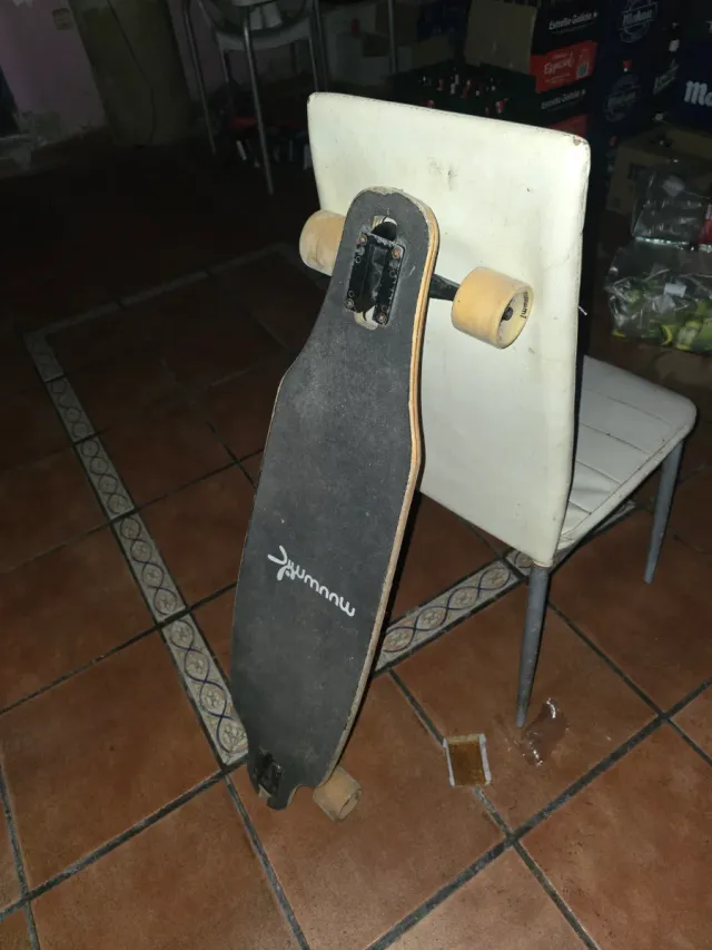 Patineta tipo longboard, ideal para desplazamientos. - Tabla con lija. - Ruedas de color claro.