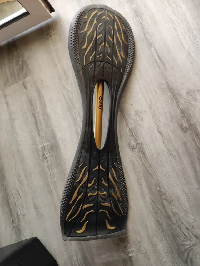 Patineta Oxelo con un diseño moderno en negro y detalles dorados. Como se aprecia en las fotos, está en buen estado y funciona perfectamente.