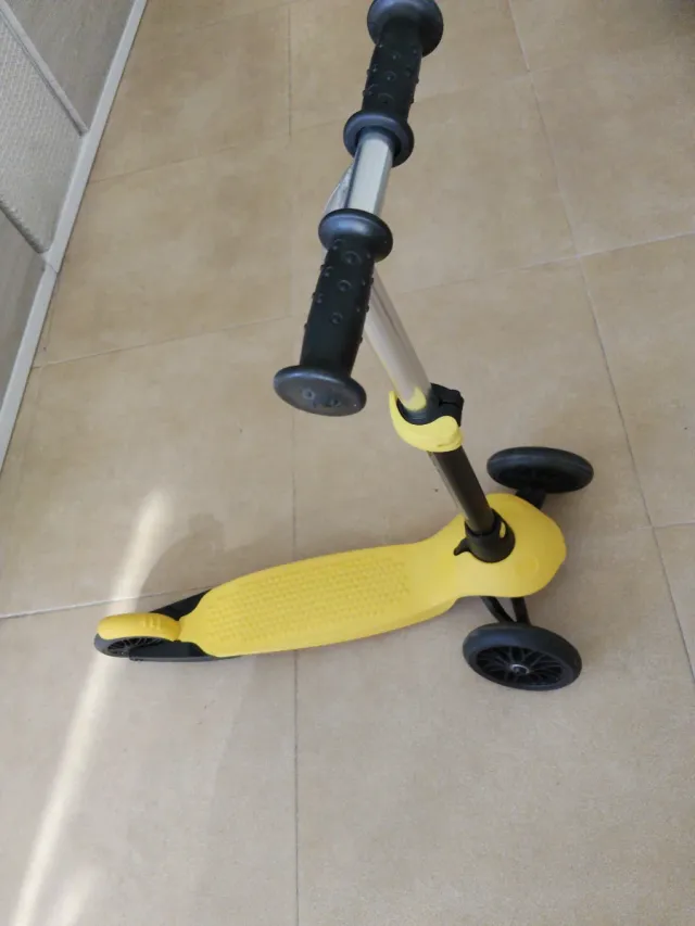 Detalles del productoPatinete de tres ruedas en color amarillo, ideal para los más pequeños. Diseñado para ofrecer estabilidad y diversión.
