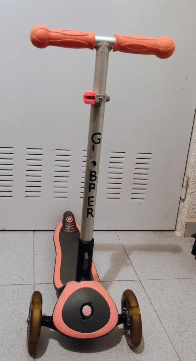Detalles del productoPatinete infantil de tres ruedas en color rosa y gris. Ideal para los más pequeños.