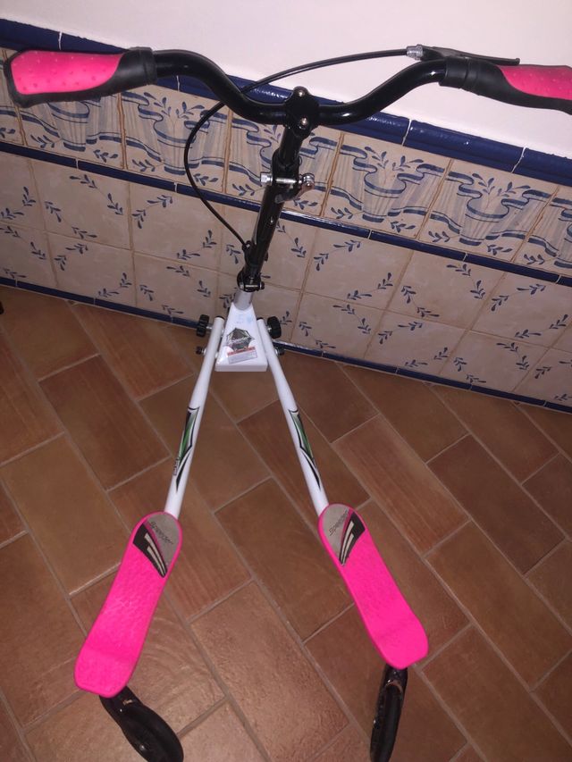 Patinete doble, 3 ruedas de la marca Speeder. Está en buen estado. - Usado una vez - Color blanco y rosa. - Manillar negro - Práctico para guardar y transportar