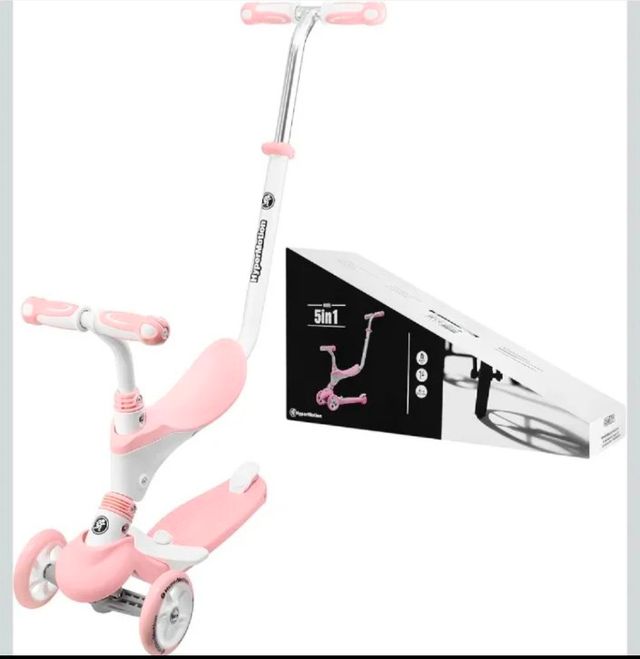 Detalles del productoPatinete infantil 5 en 1 en color rosa y blanco. Está en muy buen estado.