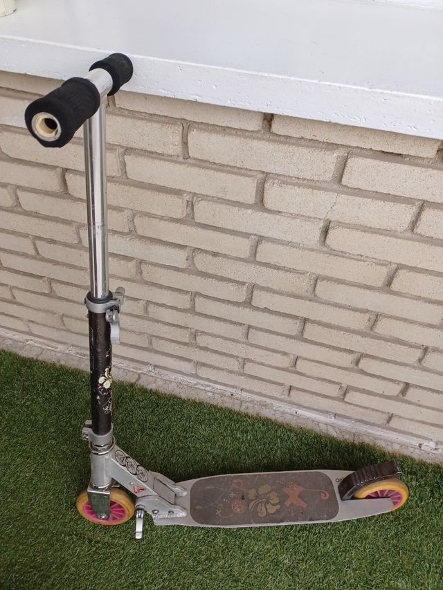 Detalles del productoPatinete ideal para empezar a practicar, entre 5 y 10 años aprox. Plegable. Usado pero bien cuidado para seguir disfrutando de él durante muchos años más. Tengo otro más en mi perfil. Si te llevas los dos hago descuento. Medidas del producto