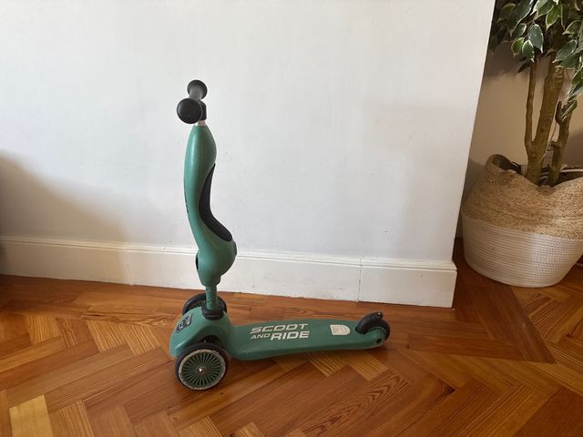 Patinete adaptable de la marca Scoot and Ride. - Diseño en color verde. - Ruedas delanteras dobles para mayor estabilidad. - Plataforma antideslizante.