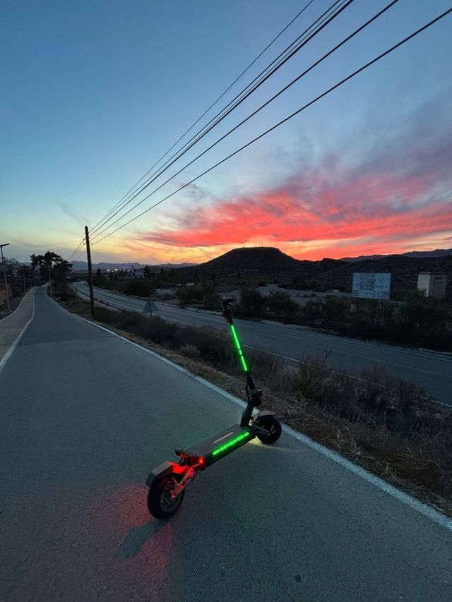 Detalles del productosin guardabarros, sin maneta de freno de alante, luces led se cambian con una aplicacion, rueda trasera y pastilla del freno nuevo la rueda tendra 10km de uso, patin corre 40-50 depende del peso mejor ver y probar