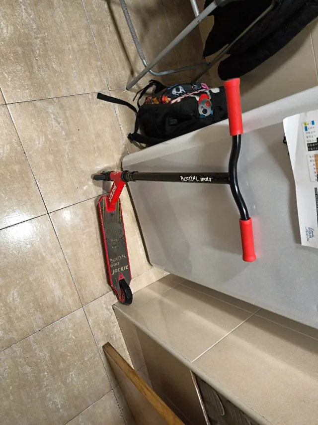 Patinete de la marca Bestial Wolf, modelo Jackie, en color rojo. - Diseño deportivo. - Puños de goma para mejor agarre. - Plataforma con diseño gráfico.