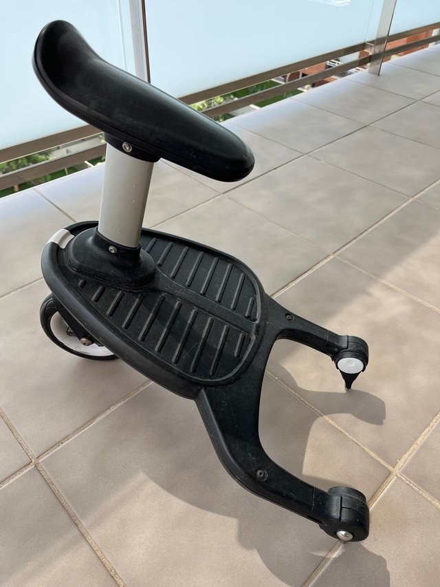 Accesorio para carrito Bugaboo que incluye un asiento. - Plataforma con ruedas. - Asiento negro. - Estructura de plástico y metal.