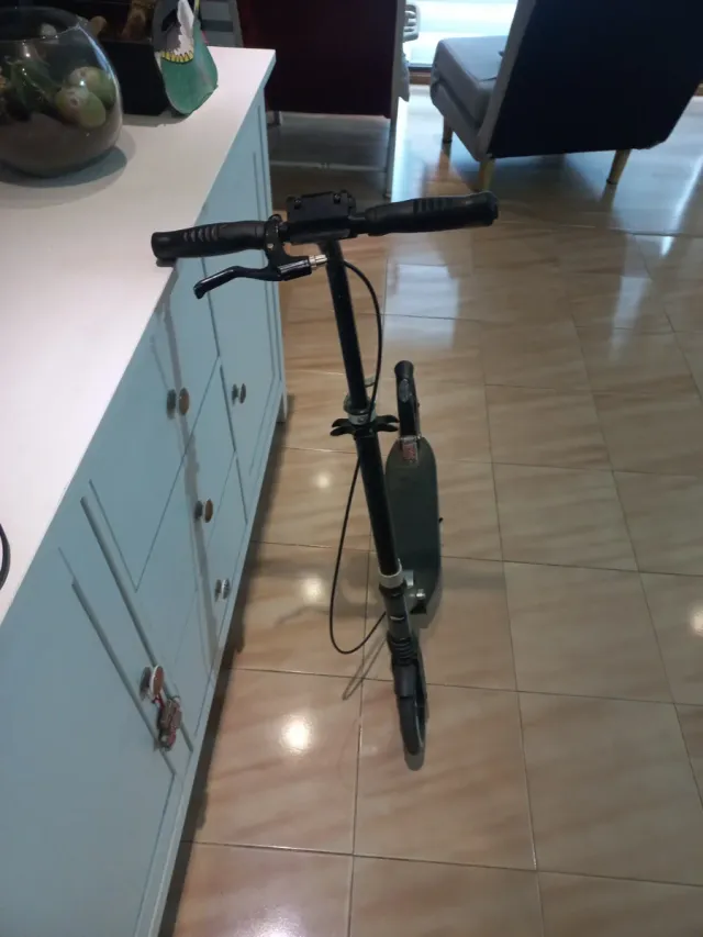 Patinete con sistema de frenado en ambas ruedas. - Freno delantero. - Freno trasero.
