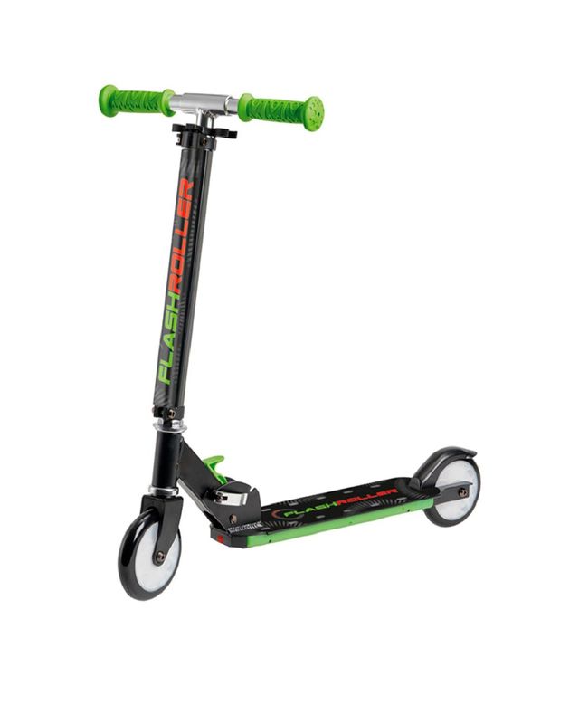 Detalles del productoEste patinete con luz está indicado para niños a partir de 6 años. Lleva incorporadas luces en las ruedas, el tubo y la tabla. El manillar es regulable en altura y los puños son estriados para un mejor agarre. Cuenta con freno trasero para rodar con toda seguridad y es muy fácil de plegar y transportar. 50 kg máximo de peso. Funciona con 2 pilas AA