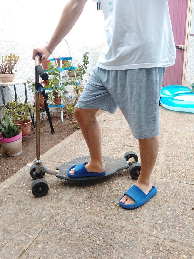 Patinete cuatro ruedas manillar direccionable.