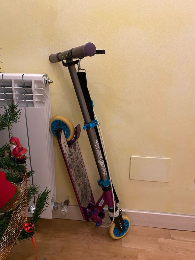 Detalles del productoEsta usado, la parte donde se colocan los pies está mas sucia, todo lo demás esta en perfecto estado, con ruedas que no suenan y freno manual y de pie, se pliega de forma muy sencilla para poder transportarlo mucho mas facilmente Medidas del producto