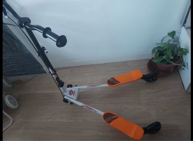 Patinete doble Ridetrike en buen estado. - Diseño moderno y atractivo. - Color blanco y naranja. - Ideal para niños.