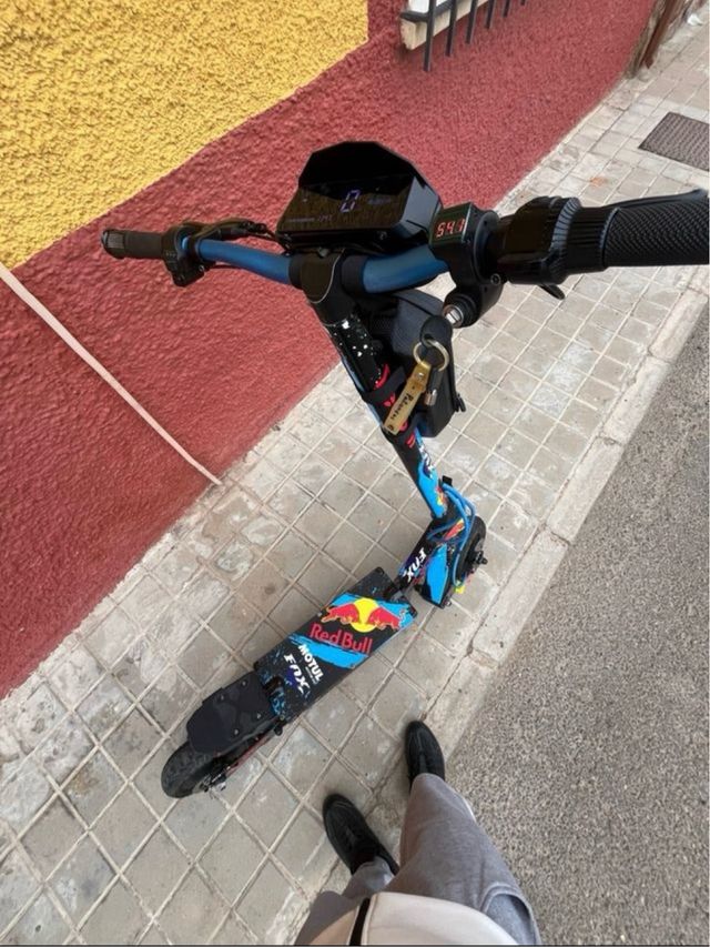 Detalles del productoPatinete eléctrico lleva vinilo de myurbanscut tiene tmb el manillar cambiado como se puede ver en la foto lleva llave con voltímetro y luces led la rueda de atrás está recién cambiada y las pastillas de frenos tmb están todas recién cambiadas