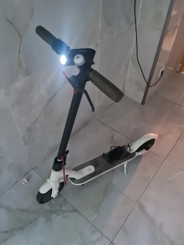 Detalles del productoPatinete eléctrico en buen estado, ideal para desplazamientos urbanos. Su diseño combina blanco y negro.